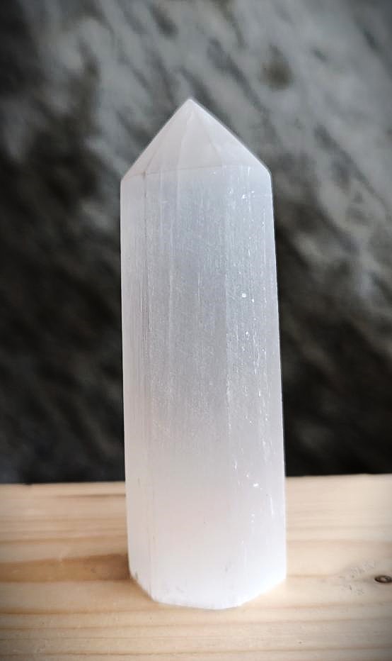 Sélénite taillée en forme de prisme.